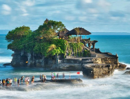 Пура Танах Лох е може би най-популярният храм в Бали, своеобразна визитна картичка на острова. Самите балийци го наричат „Храм на Земята в Океана“. По време на прилив миниатюрното светилище се превръща в остров, в който се разбиват вълните. Гледката е направо фастастична! Това е един от седемте свещени храма на морето, разположени така, че всеки следващ може да бъде видян от предишния. Храмовете защитават Бали от злите духове на океана, преграждайки им пътя.